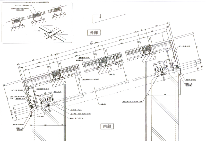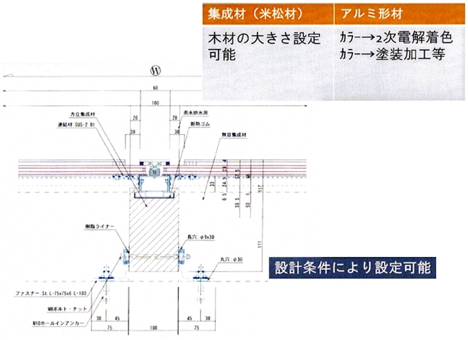 - 従来のアルミ製トップライトに集成材(米松製品)をドッキング。